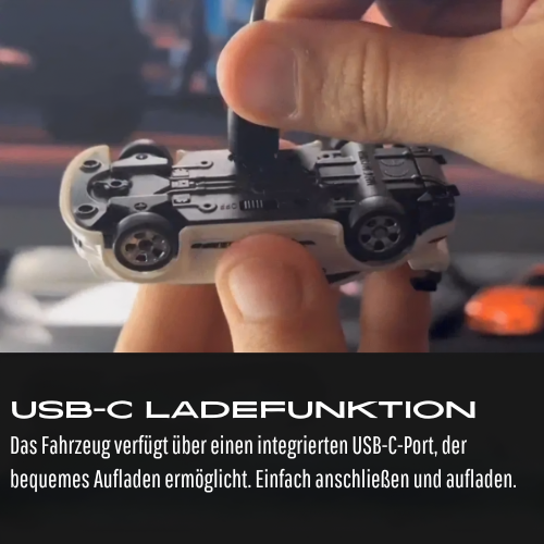 Unser Driftix Turbo im Maßstab 1:64 bringt echtes Rennfeeling auf kleinster Fläche. Ob Tisch, Schreibtisch oder Boden – dank 4WD-Antrieb, stufenloser Steuerung und LED-Lichtern driftest du präzise durch jede Kurve. Die robuste PVC-Karosserie ist sehr stabil, während der Akku per USB-C in nur 25 Minuten geladen ist und bis zu 20 Minuten Fahrspaß bietet. Perfekt für spontane Rennen mit Freunden – überall und jederzeit.
